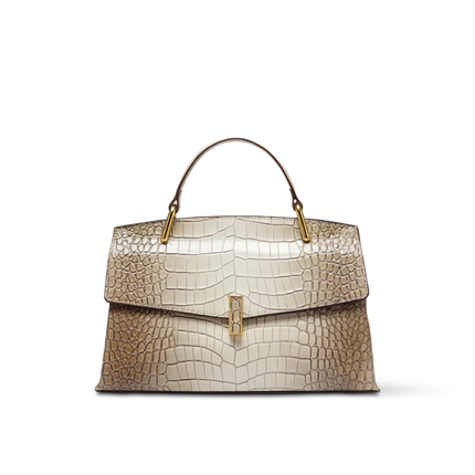 Genuine Leather Crocodile-Embossed Top Handle Crossbody Bag